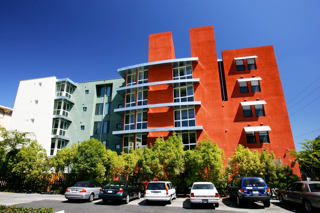 The complex building program on a tiny site called for two levels of below-grade parking, a ground-floor concrete podium for the service center, and four floors of wood framing for the housing above. Built at a cost of $14 million, the project was funded by a patchwork of grants, loans, capital campaign dollars, and the sale of engraved bricks and naming opportunities. The project was conceived by an alliance of community groups and service providers dedicated to meeting the needs of the homeless and working poor in this mainly affluent community.