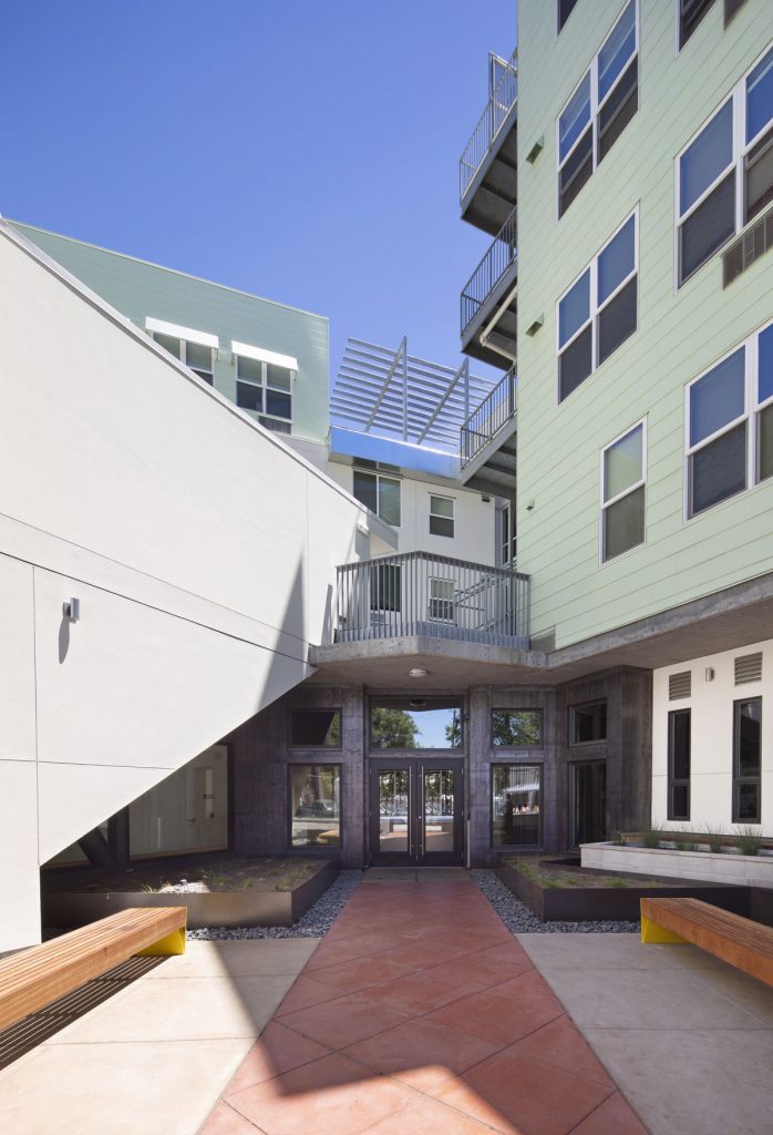 Second Street Studios is an infill redevelopment project within walking distance of downtown San José. As a sustainable, transit oriented, mixed-use development, the project revitalizes a greatly underutilized property at the gateway to the Spartan/Keyes neighborhood. It consists of 135 units of affordable rental housing on four floors over 11,000 s.f. of ground-floor retail and supportive social service space. At a density of 116 residential units per acre, the project is exceptionally efficient in its use of land. The project provides permanent supportive housing for extremely low income tenants, including veterans and people with developmental disabilities.