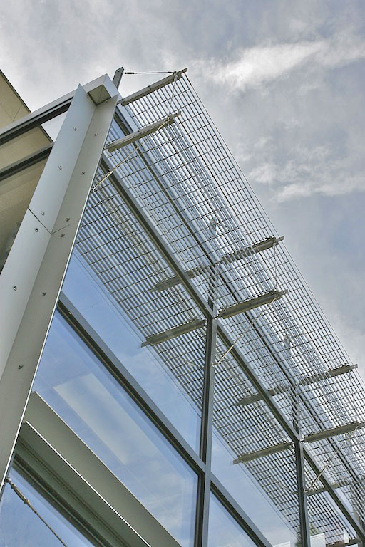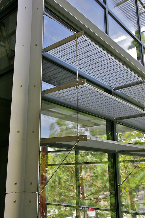 A variety of sustainable design features were incorporated. Daylighting meets the majority of the building’s daytime lighting needs. Slats of recycled plastic lumber were applied over south- and west-facing glass to create a sunscreen and contribute to the passive cooling of the building. Restrooms have recycled plastic partitions and countertops along with recycled glass tiles.