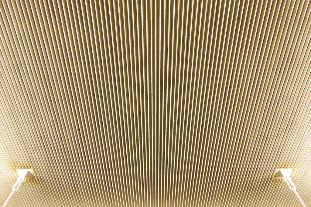 Adjacent green spaces are connected to one another by the building’s porosity: the design conceptually lifts the building off the ground and places an arcade structure beneath it, allowing pedestrians and bicycles to pass through. Roll-up doors off the auditorium and floor-to-ceiling windows on the upper levels contribute to a feeling of openness.