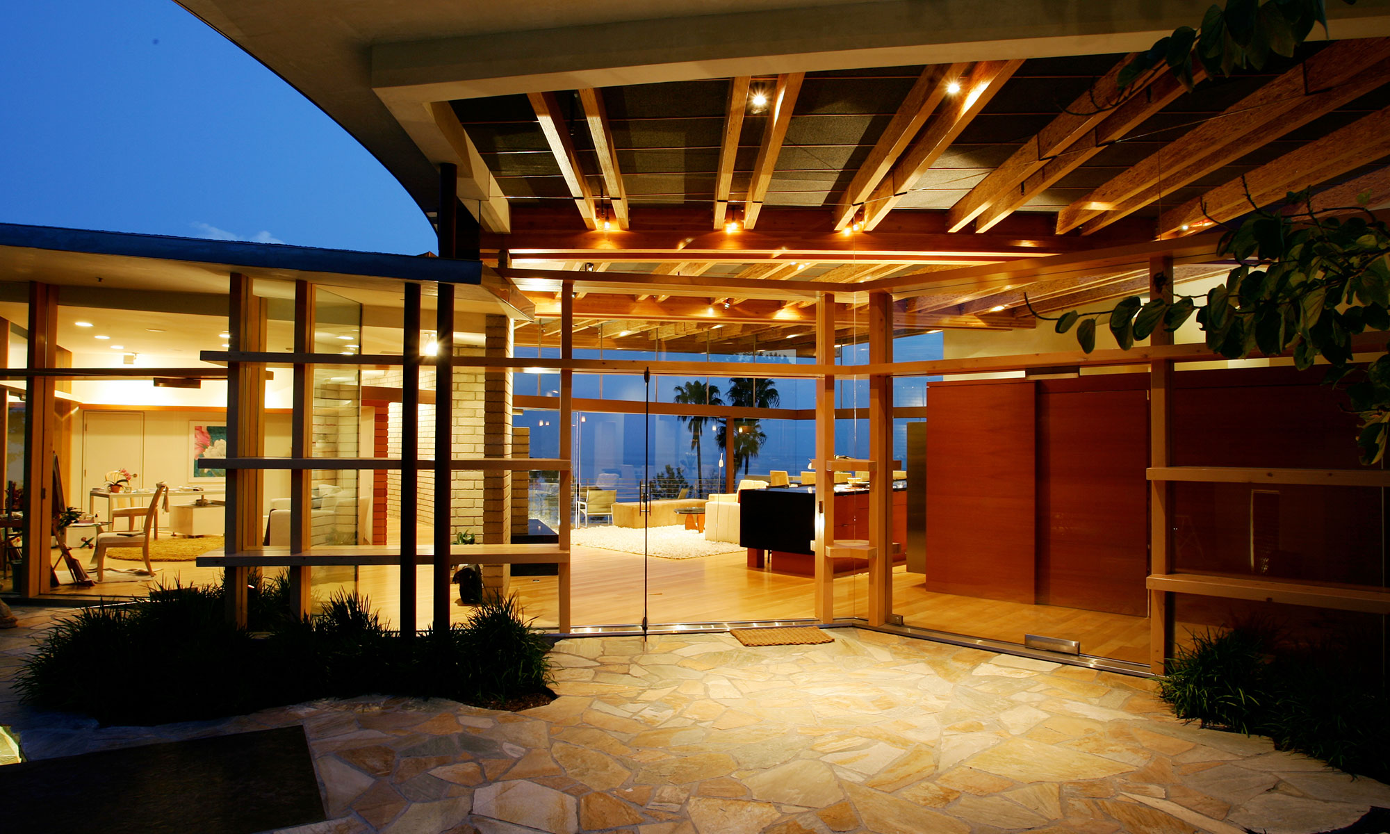 Sensing the opportunity to atone for the “design sins” of his inexperienced youth, Rob readily agreed. The resulting 3,300-SF structure twists subtly to frame spectacular views up and down the California coastline. Both the entry façade and oceanfront side are floor-to-ceiling glass, making the structure literally transparent.